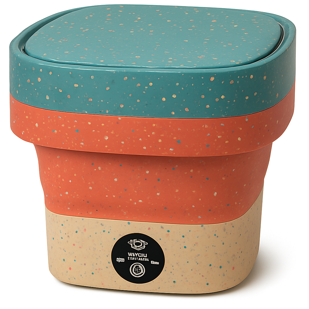 Foldable Mini Washing Machine – A compact, collapsible washer designed for small clothes like underwear, socks, and baby garments, perfect for travel, dorms, and limited spaces.